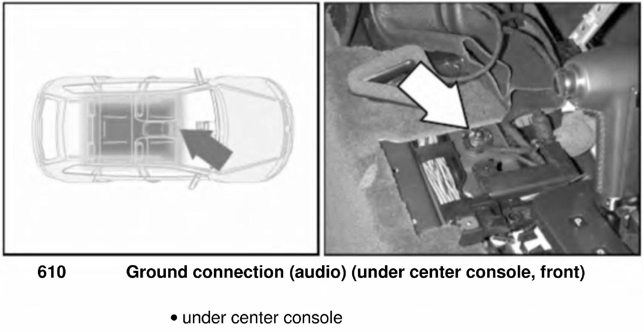 Ground Connection (audio) (under Center Console, Front) 610: