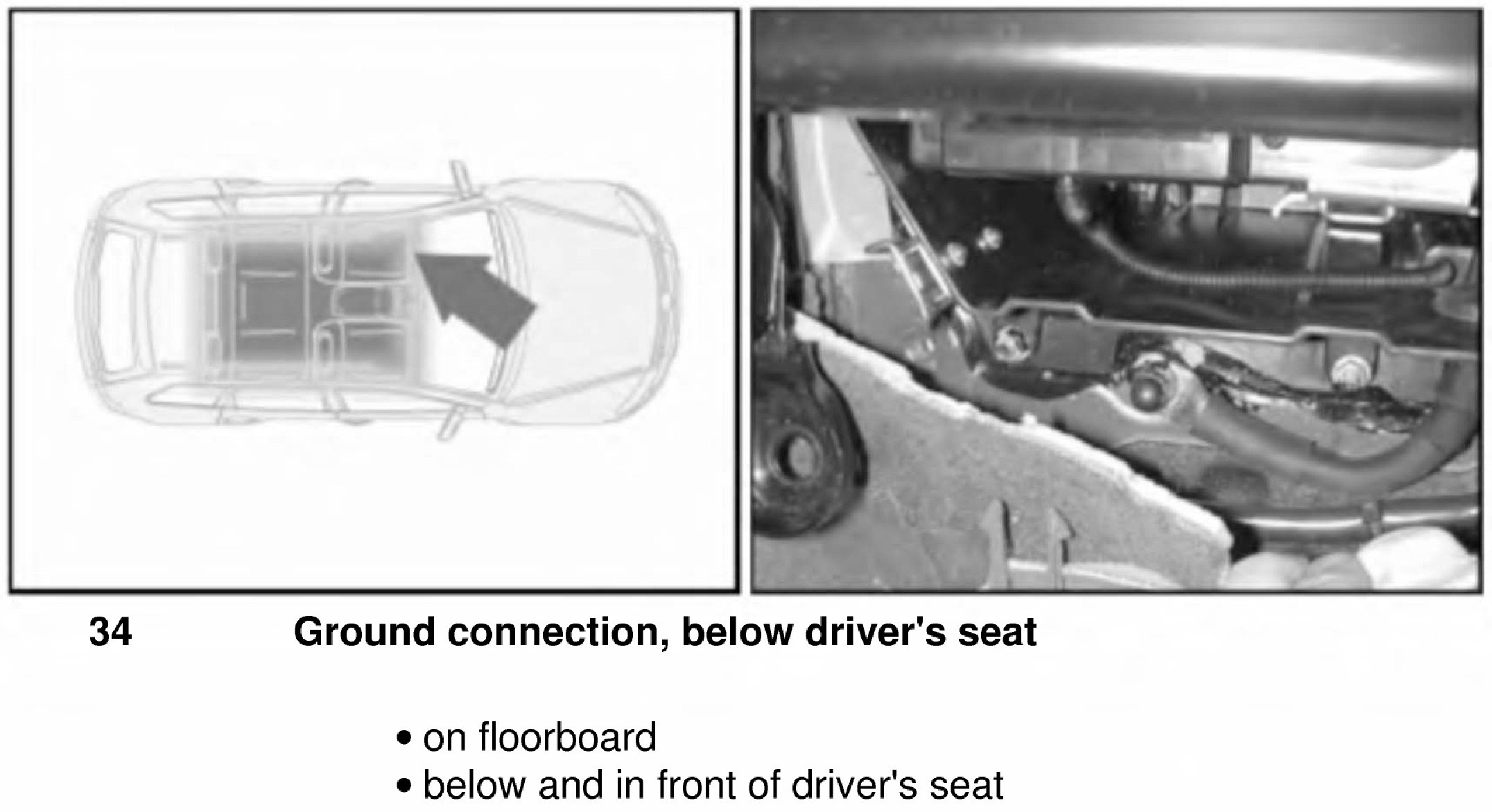 Ground Connection, Below Driver Seat 34: