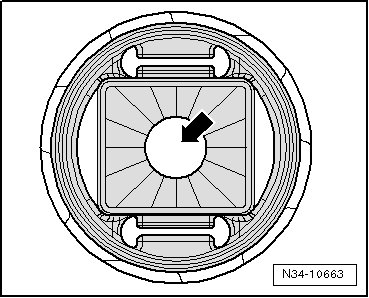 - Before bolting on subframe, check inner contour of bonded rubber bushing sleeve in subframe - arrow -.