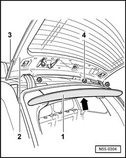 - Remove the hex nut -4- for the rear spoiler -3-.