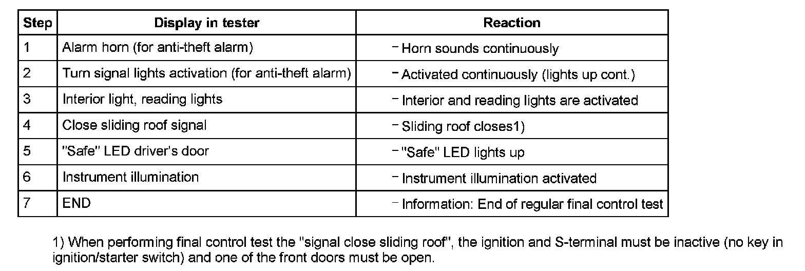 The components displayed in the Output Diagnostic Test Mode (DTM) can differ depending upon the equipment fitted to the vehicle. For example on vehicles without ATA there will be no step "1" as listed in the table below.