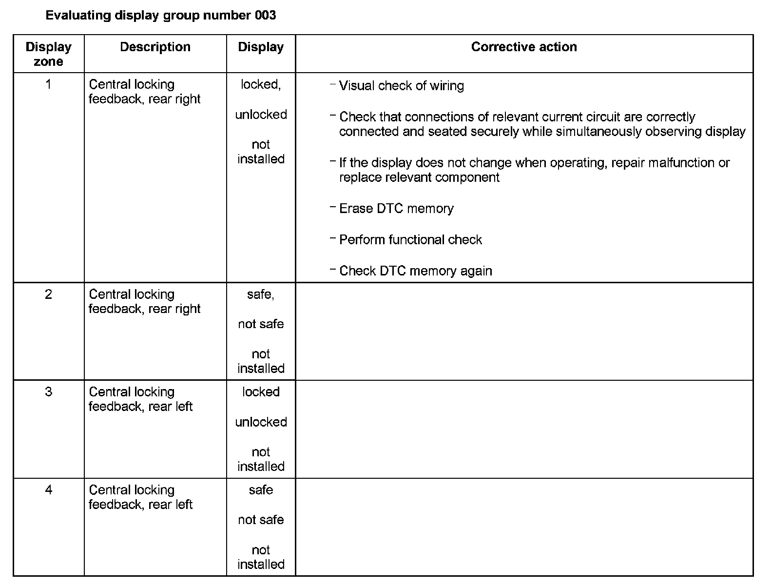 Display Zone 1 - 4: