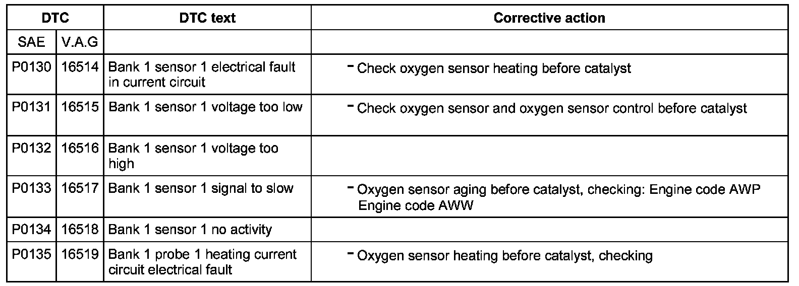 DTC P0130 - P0135: