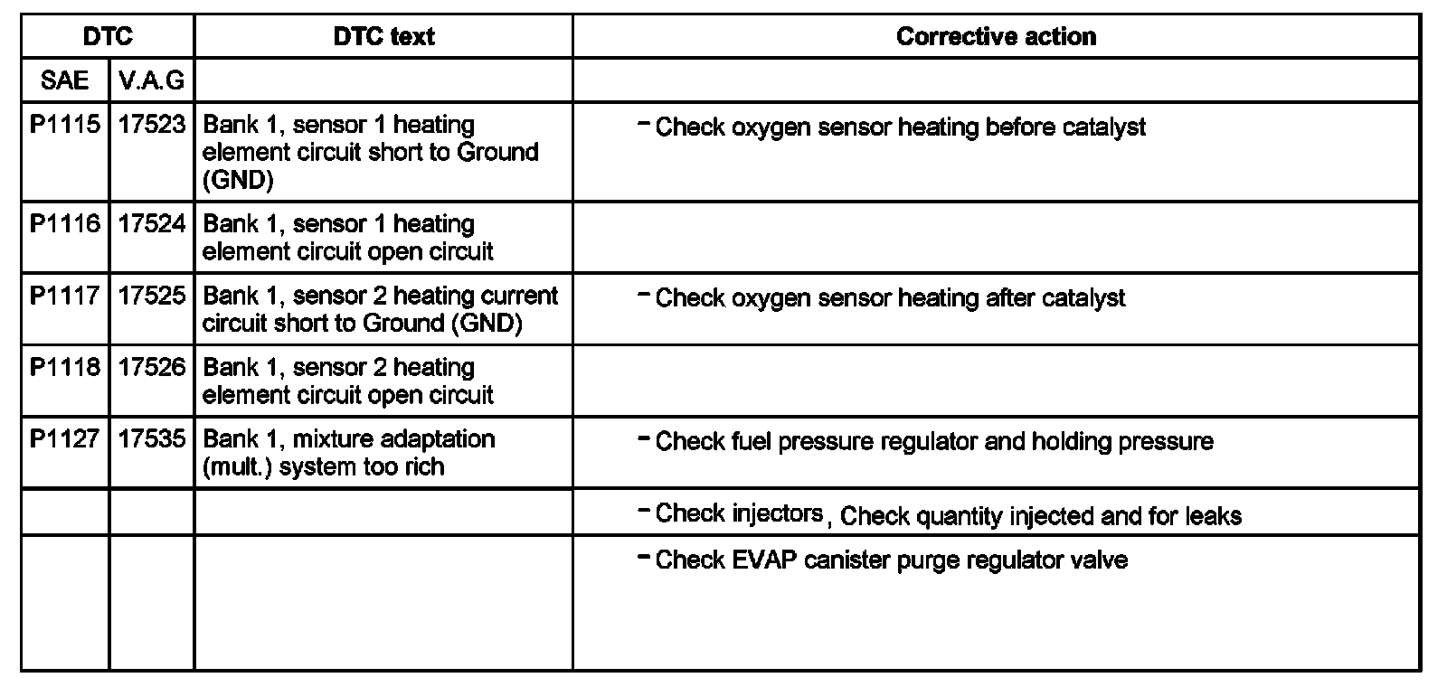 DTC P1115 - P1127: