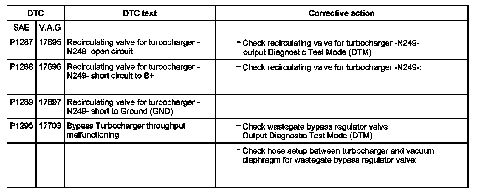DTC P1287 - P1295:
