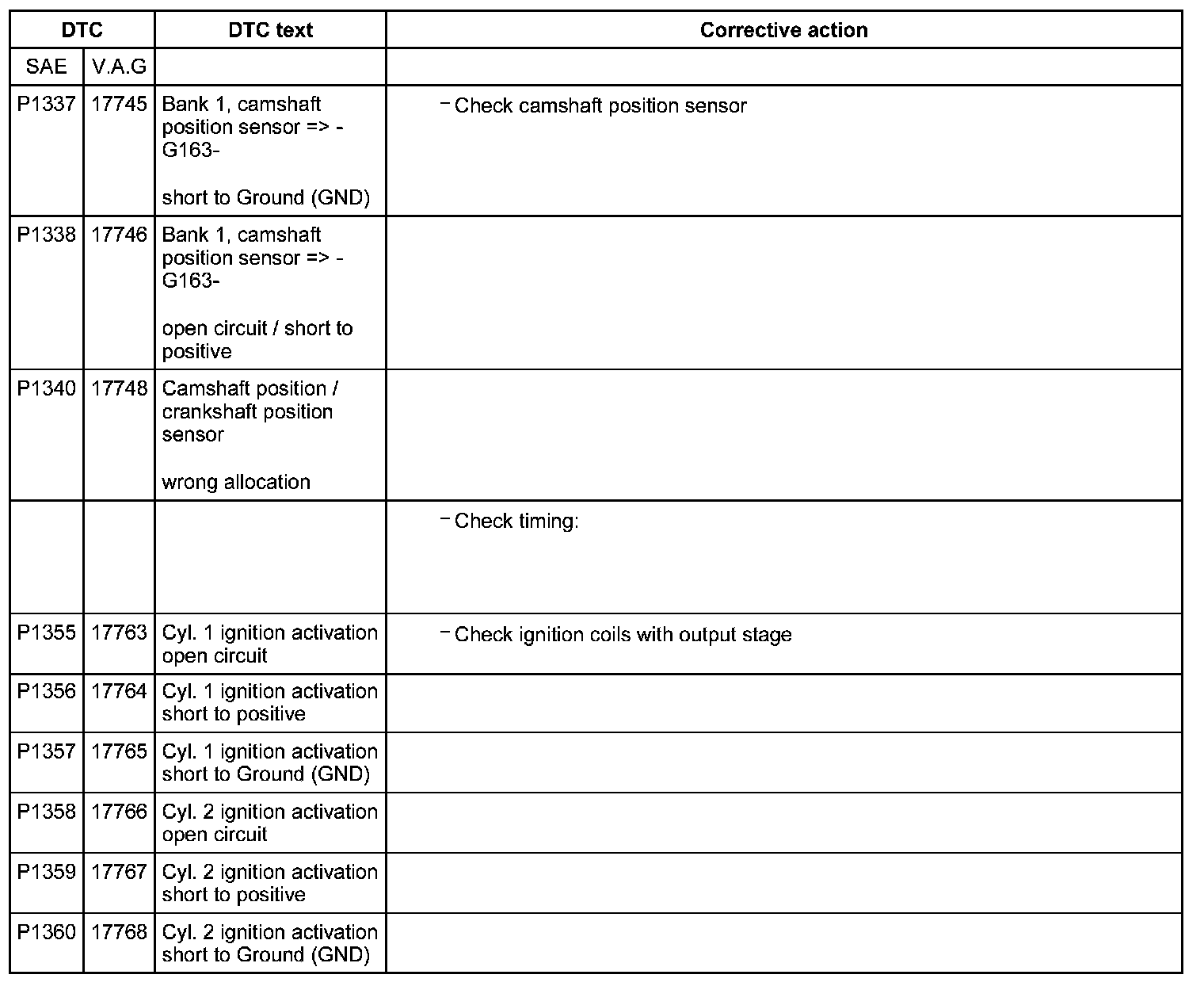 DTC P1337 - P1360: