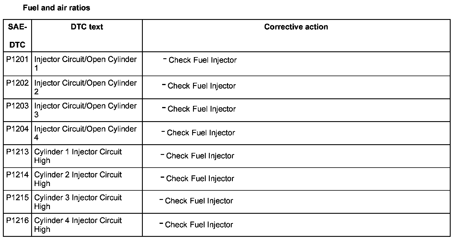 DTC P1201 - P1216: