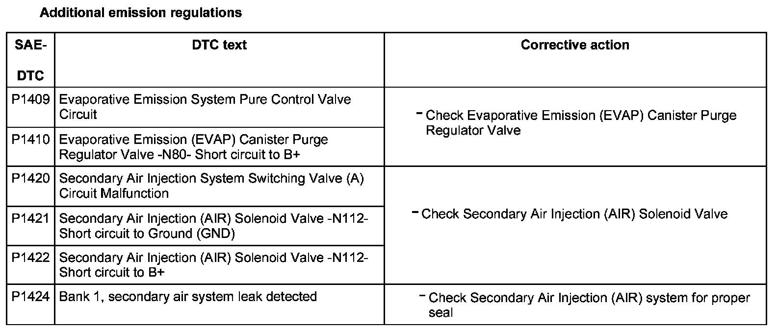 DTC P1409 - P1424:
