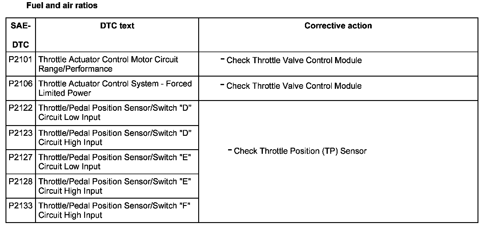 DTC P2101 - P2133: