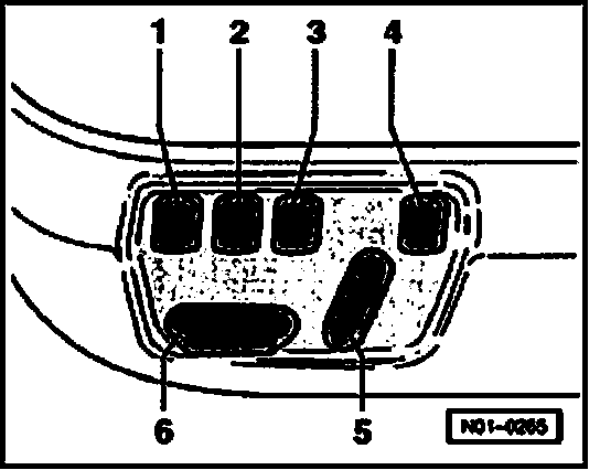 The memory system can be turned off at any time using the red switch -4- (MEM OFF). The seat and the exterior mirrors can then only be set manually with switches -5- and -6-.