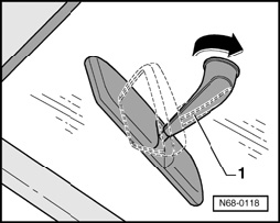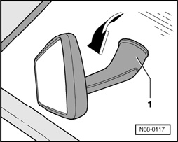 - Press interior mirror - 1 - downward at an angle - arrow - to release from retaining plate (retaining springs in base of mirror).
