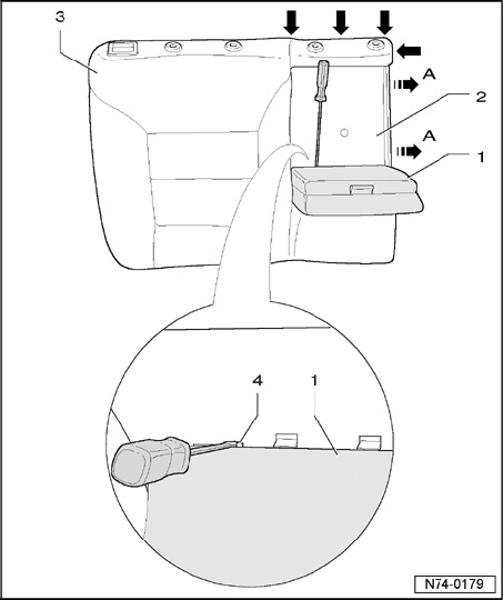 - Remove center armrest - 1 - from backrest.