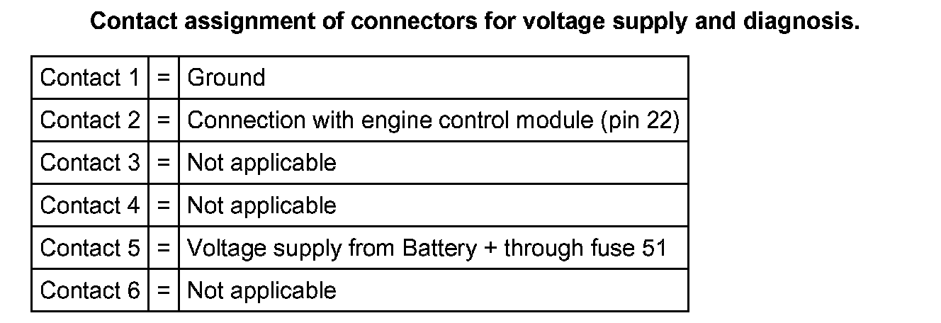 Contact assignment of connectors for voltage supply and diagnosis (Part 1):