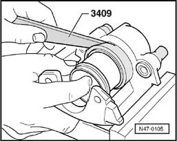- Thinly coat piston and seal with assembly lubricant G 052 150 A2 before inserting.