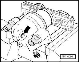 Note: Place a piece of wood in the recess to prevent damaging the piston.