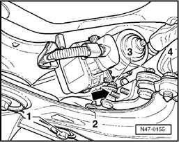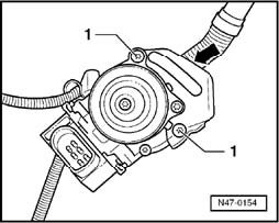- Remove bolts -1- on bracket for brake system vacuum pump -V192-.