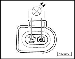 - Connect voltage tester V.A.G 1527B to disconnected connector of after-run coolant pump V51, using adapter cables from connector test set V.A.G 1594C. LED must light up.