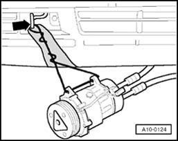 - Secure A/C compressor to tow hook so that the refrigerant lines/hoses are not under tension.