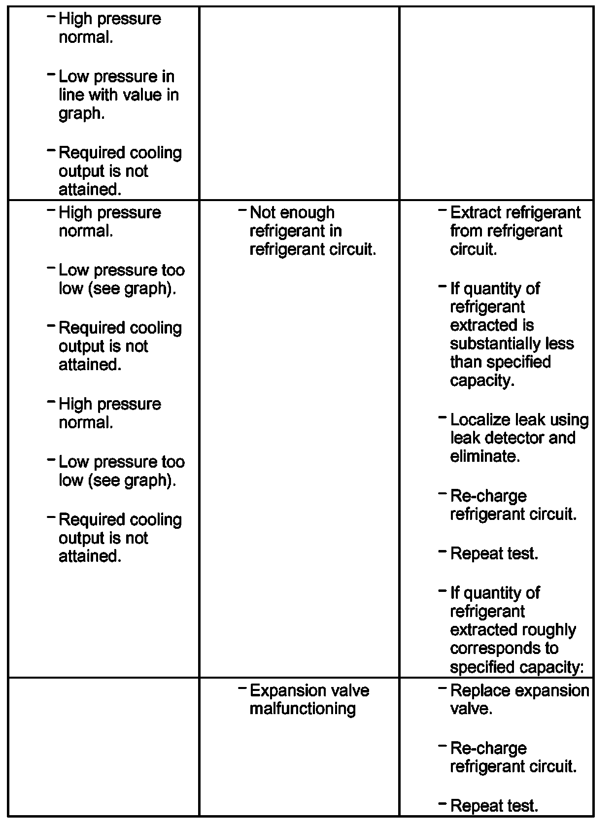 - For the malfunction "high pressure normal, low pressure too low", note the following: