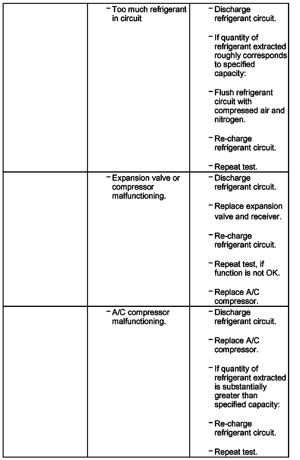 - If no malfunction is found in relation to this complaint, flush refrigerant circuit with compressed air and nitrogen.