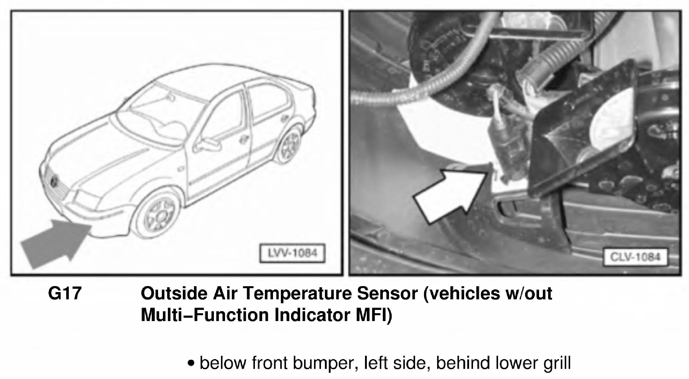 Outside Air Temperature Sensor (Vehicles W/Out Multi-Function Indicator MFI) G17