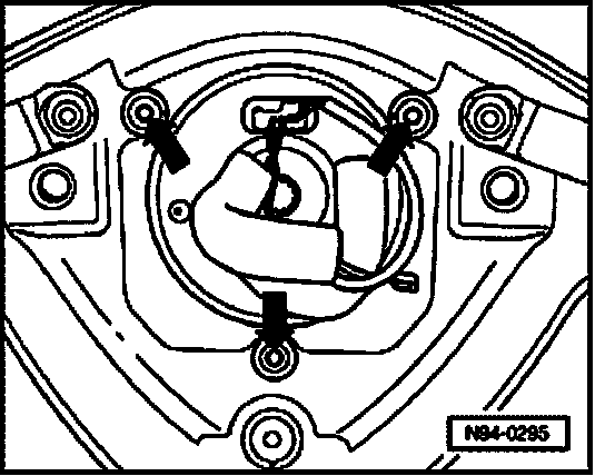NOTE: Ensure metal contact surfaces of contact plate as well as contact pins in steering wheel -arrows- are clean to metal.