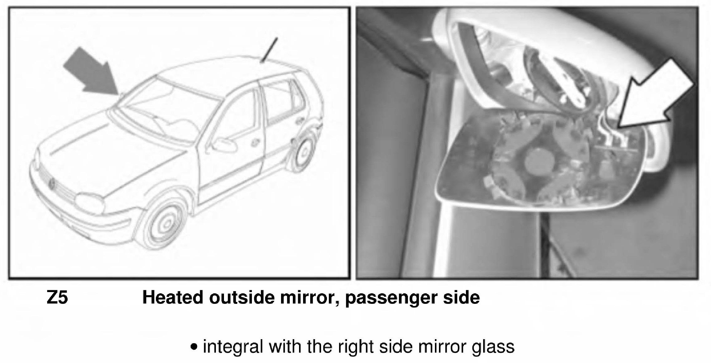 Heated Outside Mirror, Passenger Side Z5: