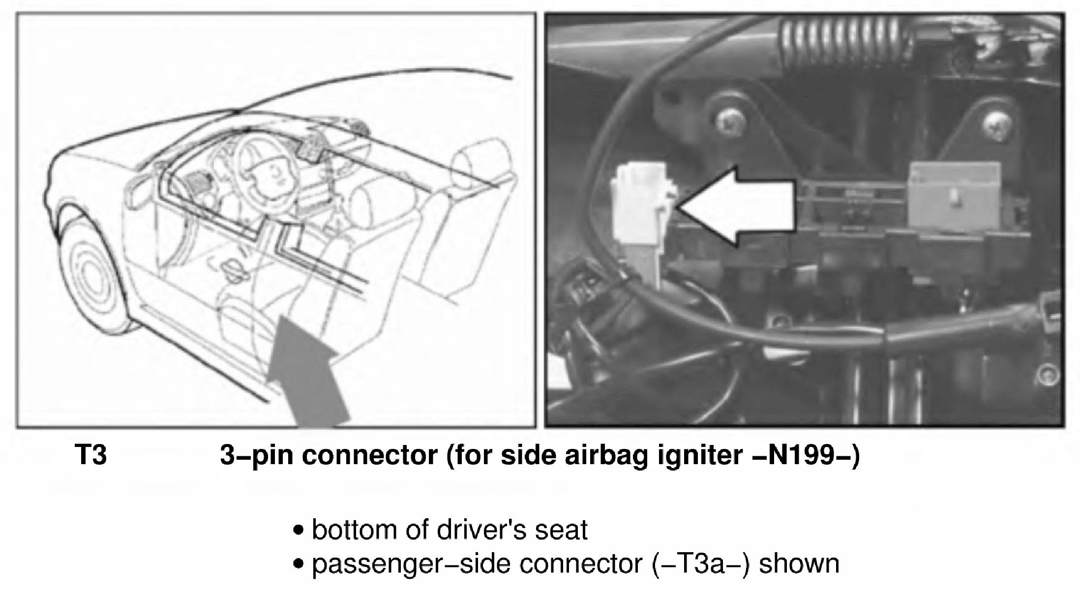 3-Pin Connector (For Side Airbag Igniter -N199-) T3