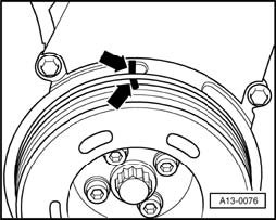 - Using a bolt, secure vibration damper/belt pulley (watch locating point).