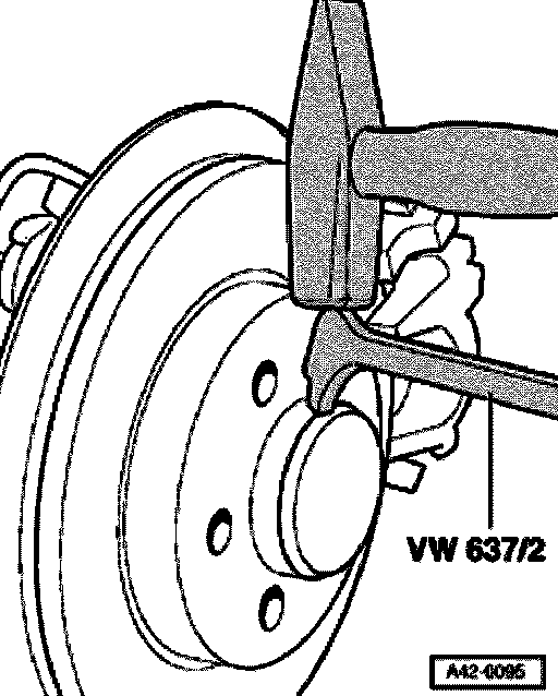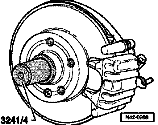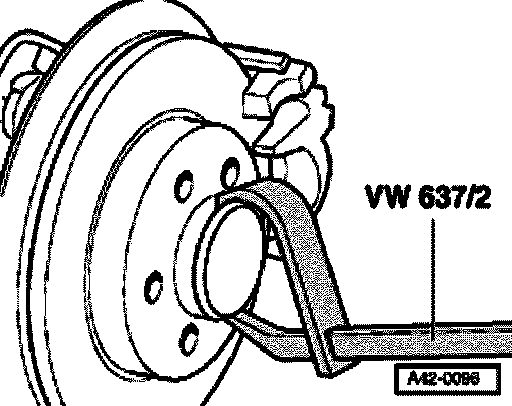 Loosen dust cap from seat by tapping lightly on claw with hub cap puller VW 637/2.