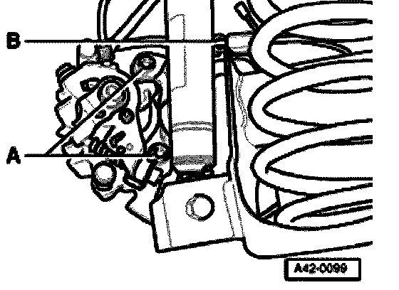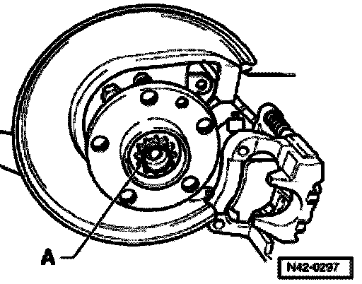 - Remove securing bolts - A - from brake caliper.