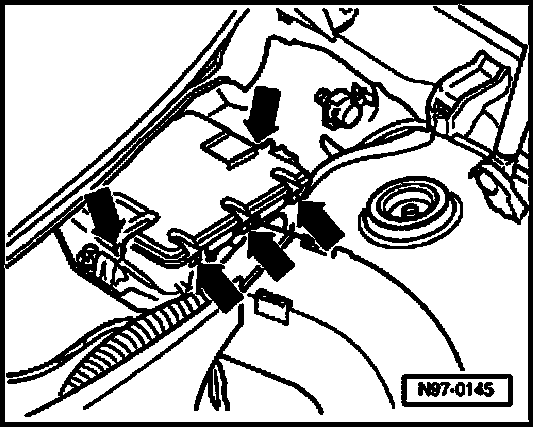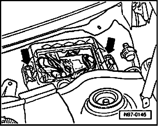 - Unclip protective housing cover at the retaining lugs -arrows- and take out upward.