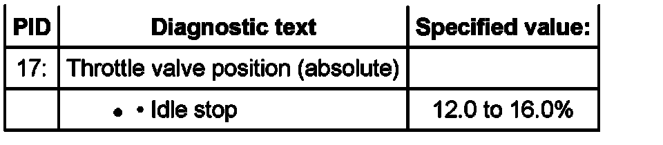 - Check specified value of throttle valve position (absolute) at idle stop: