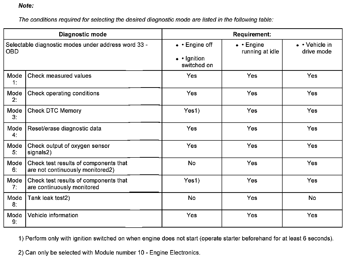 Selectable Diagnostic Modes Under Address Word 33 - OBD
