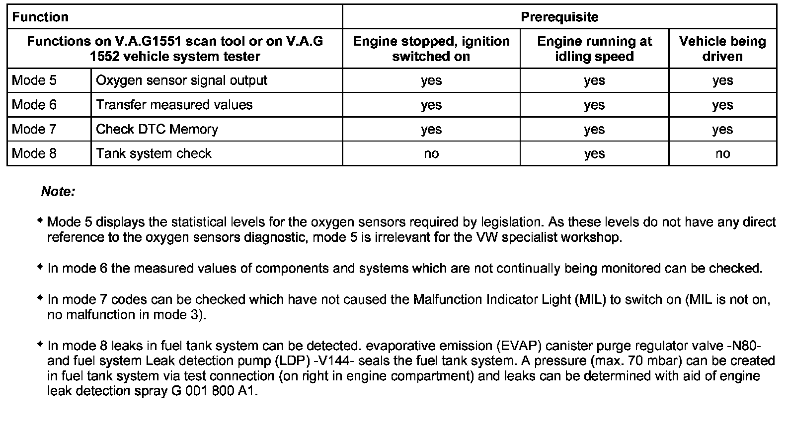 Selectable Functions (Modes) Under Address Word 33, CARB/OBDII
