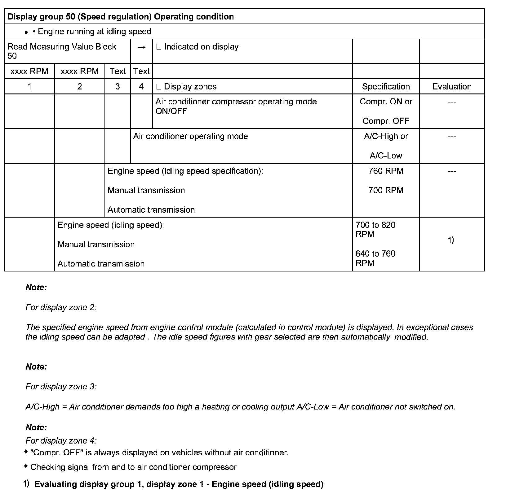 Measuring Value Blocks, Evaluating Display Groups 50 To 69 (Speed Regulation)