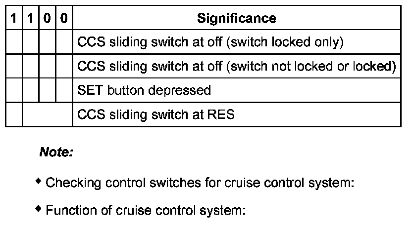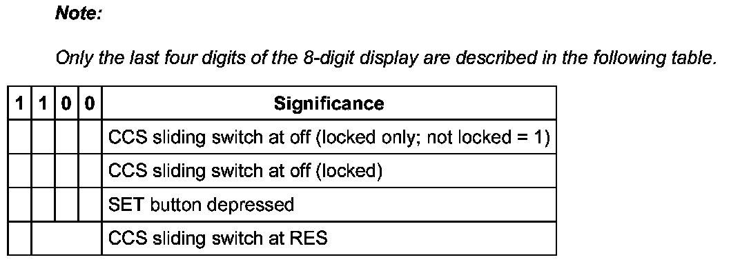 Significance of the figures in the 4 digit display, display zone 4, CCS control switches