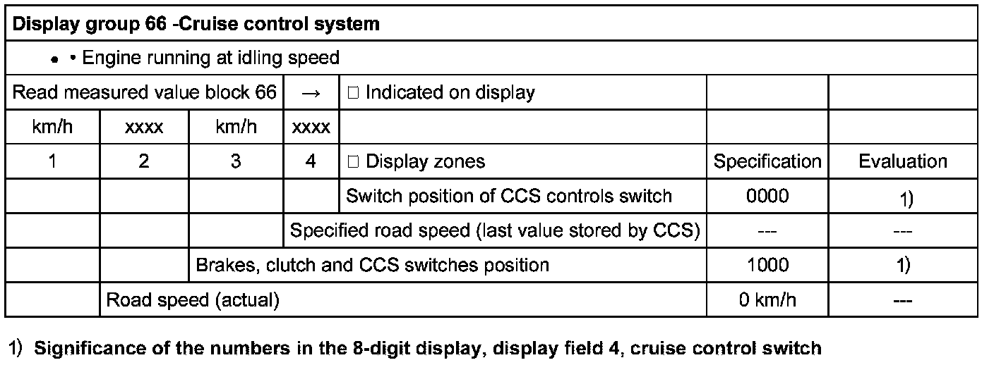 Significance of the figures in the 4 digit display, display zone 2, brakes, clutch and CCS switches position
