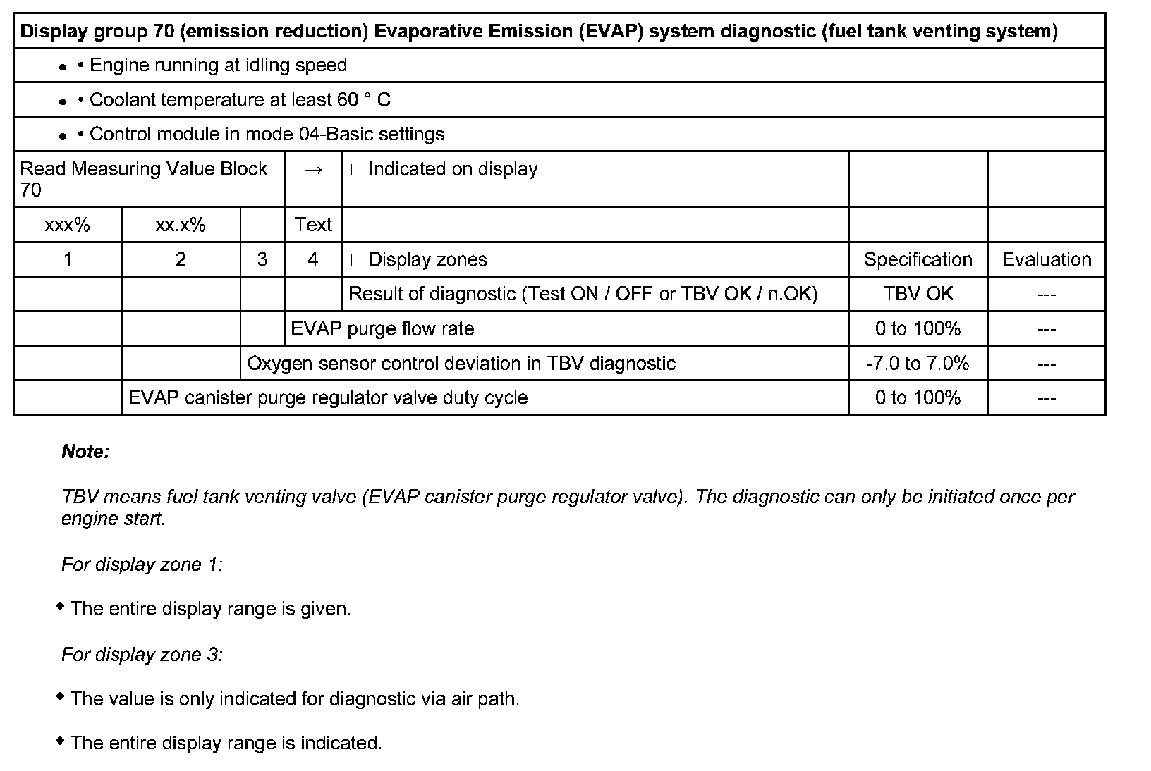Measuring Value Blocks, Evaluating Display Groups 70 To 79 (Emission Reduction)