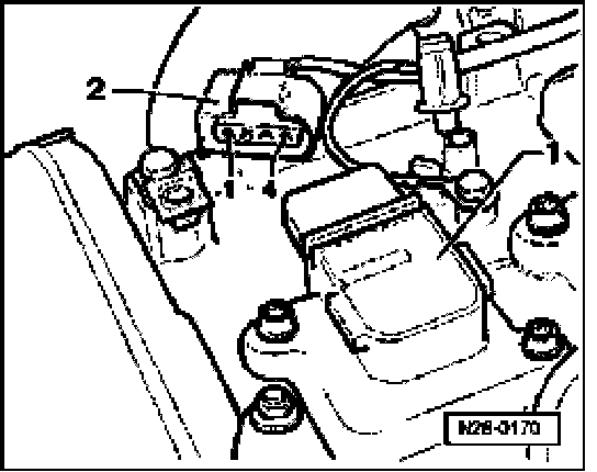 - Disconnect all 4-pin connectors -2- from the ignition coils -1-.
