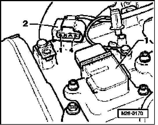 - Disconnect 4-pin connector -2- from ignition coil -1- to be checked.
