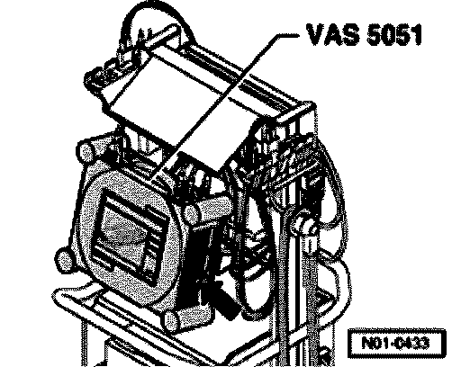 - With ignition switched off, connect tester VAS 5051 to Data Link Connector using diagnosis cable VAS 5051/1 or VAS 5051/3.