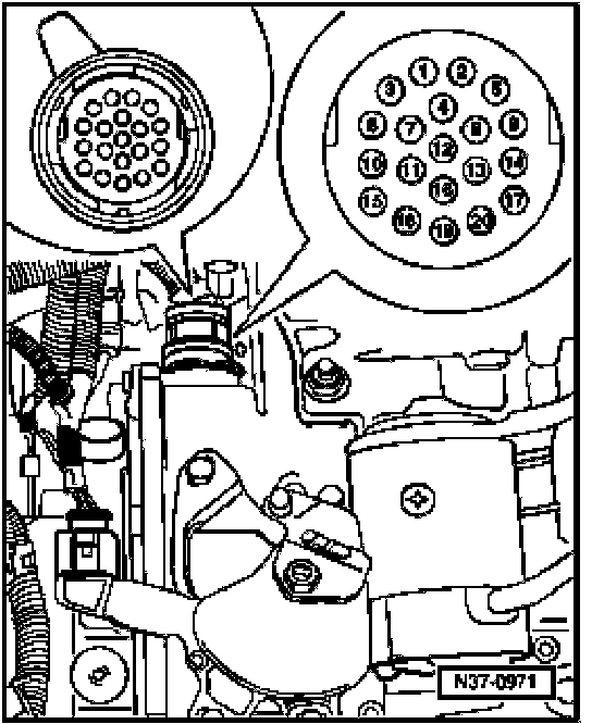 - Measure resistance of solenoid valves at test box between socket of corresponding solenoid valve to socket 1 according to wiring diagram: