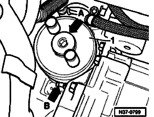 - Tighten hex head bolt (arrow -A-) to 40 Nm.
