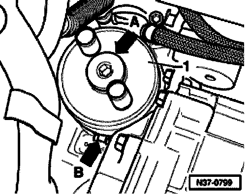 - Remove ATF cooler -1- from transmission (arrow -A-).