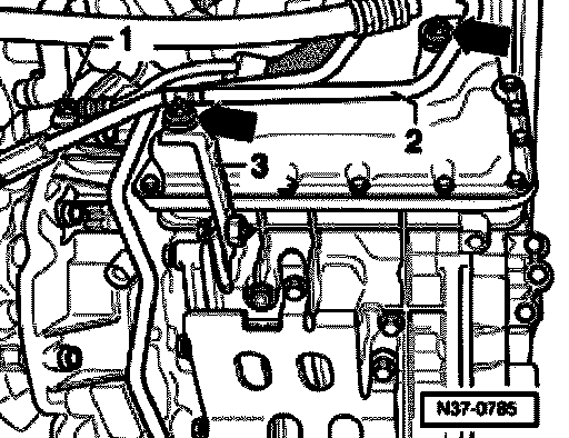 - Clip transmission sensor wiring harness -3- into retaining tabs -4- installed for this purpose.