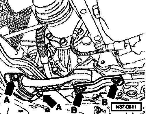 - Remove power steering line from rear of transmission (in area of pendulum support) and tie to one side.