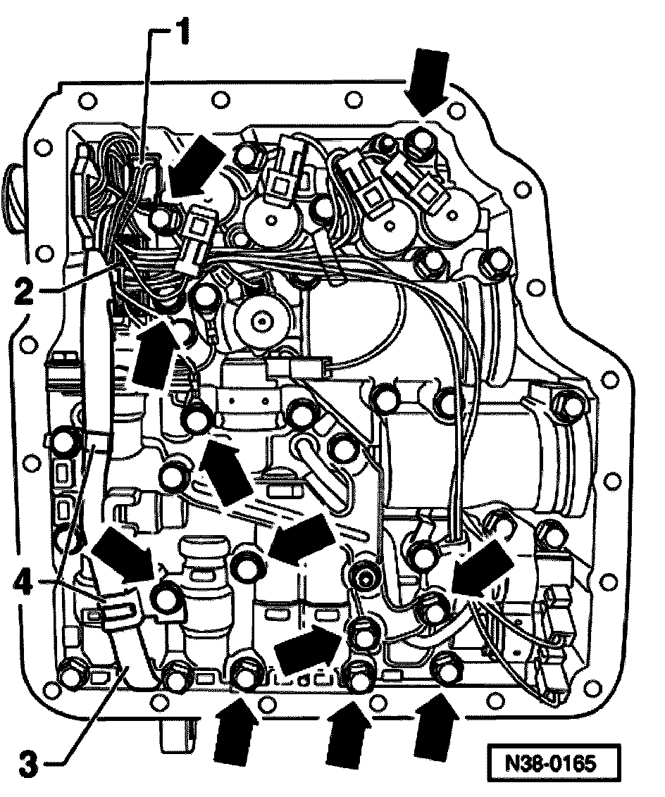 Valve body, removing and installing, 09A, 5 Spd. A/T