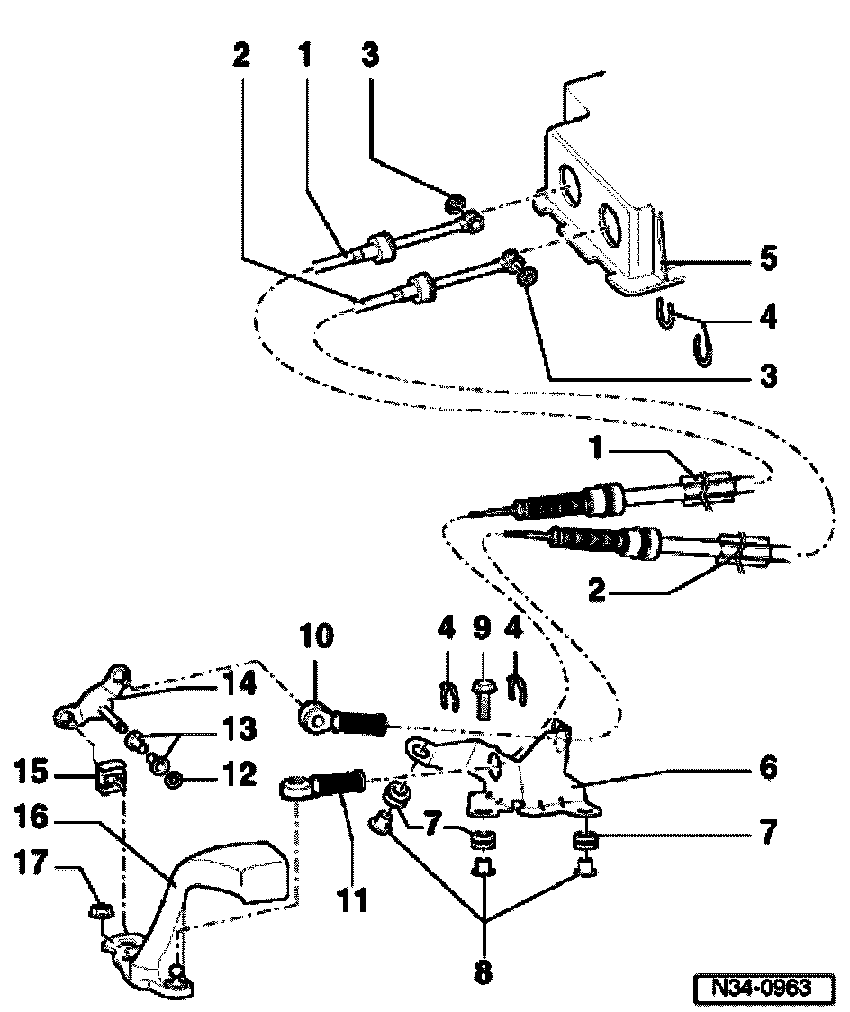 Selector cables, removing and installing, 02J, 5 Spd. M/T