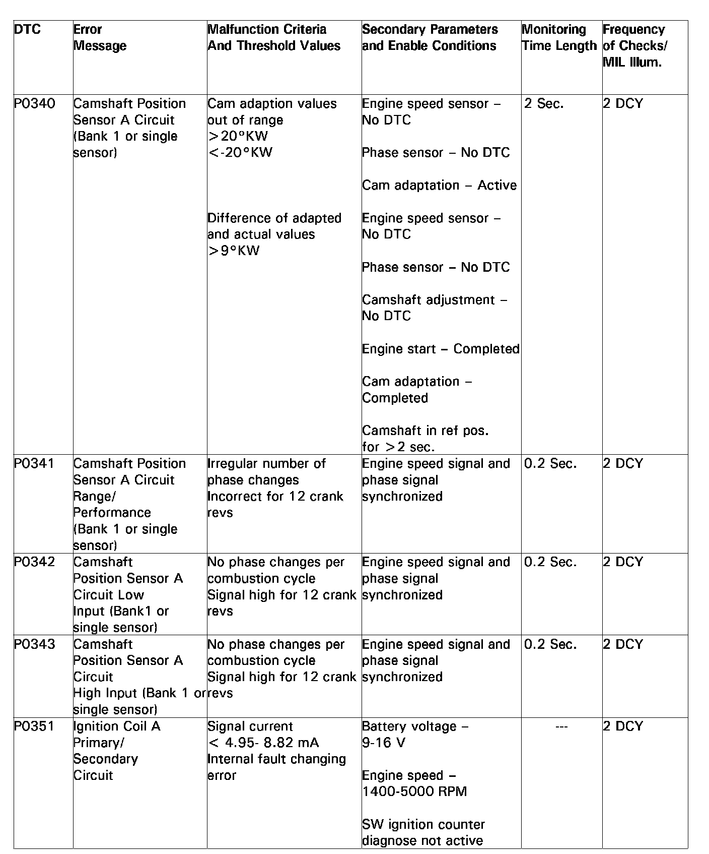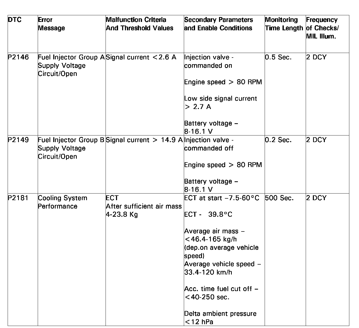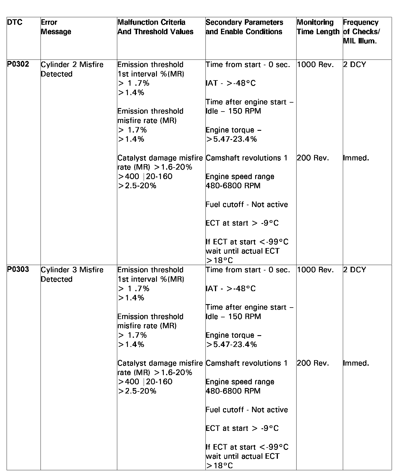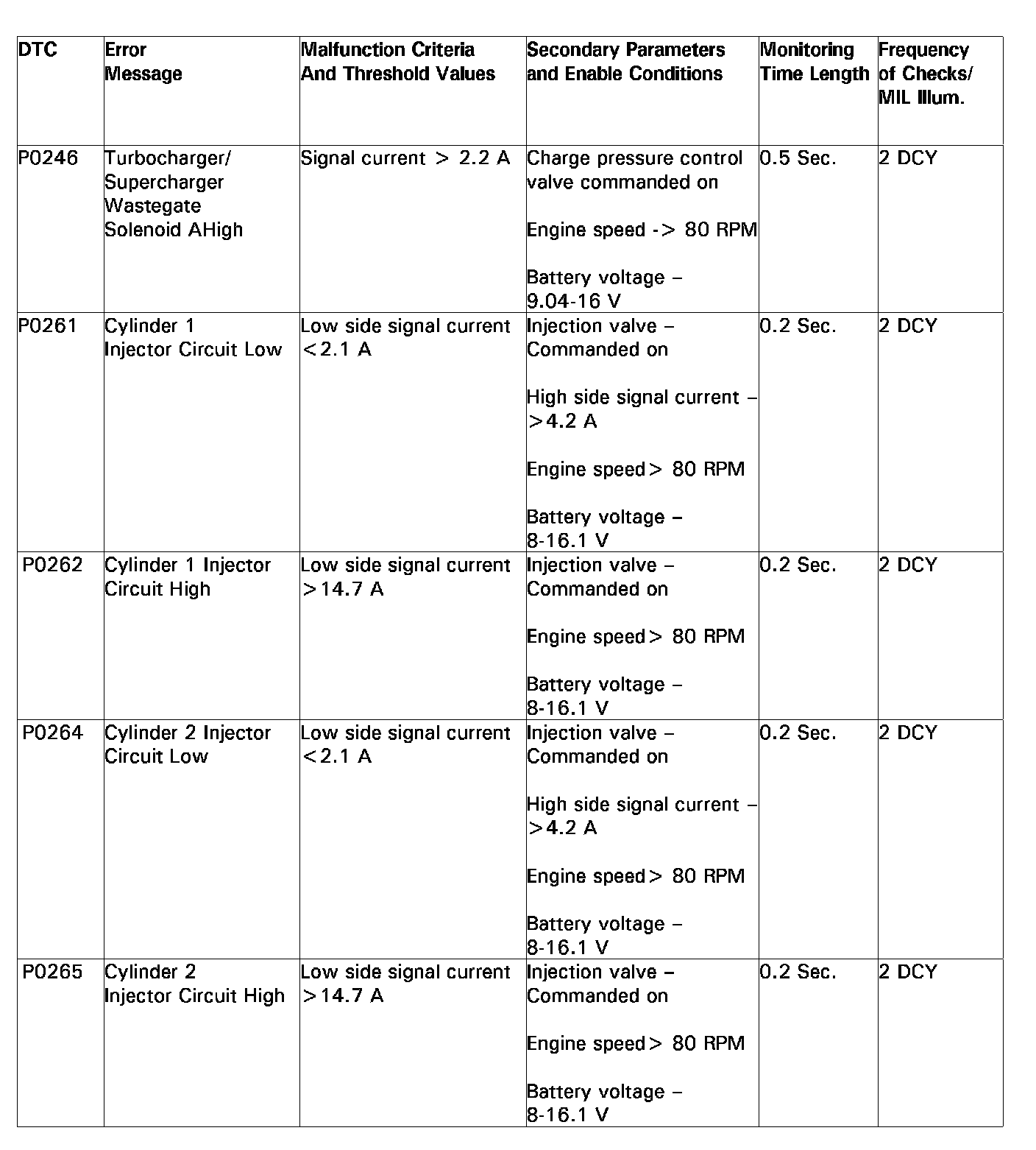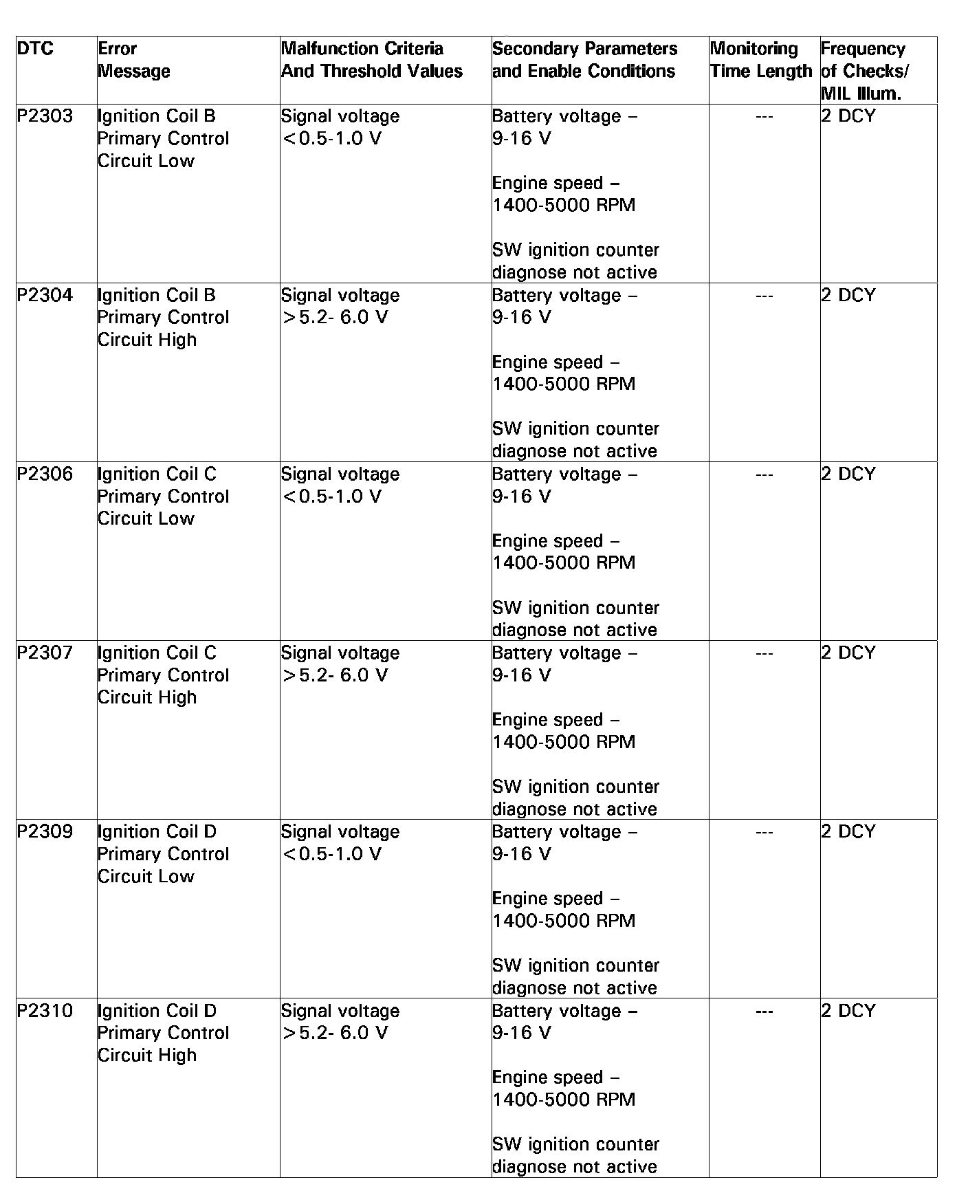 .02.00.00 - OBD DTC SUMMARY TABLEDTC P000A - P025D: